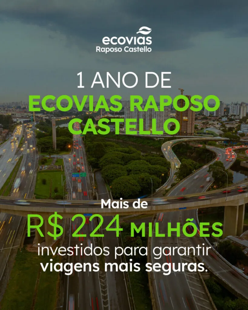 Câmeras com inteligência artificial para identificação de infrações (em fase de testes), viaturas com videomonitoramento em tempo real, sistema gratuito de SOS via celular, atualizações de trânsito nas redes sociais e atendimento por WhatsApp são algumas das inovações que a Ecovias Raposo Castello implementou em seu primeiro ano à frente dos 74 quilômetros das rodovias Raposo Tavares (SP-270), Castello Branco (SP-280) e SP-029 que assumiu em 30 de março de 2025. Em 12 meses, a concessionária investiu mais de R$ 224 milhões em melhorias, cumpriu integralmente as entregas do Programa Intensivo Inicial (PII) e do Programa de Adequação Inicial (PAI) e ainda repassou mais de R$ 27,6 milhões em ISS aos municípios da região.