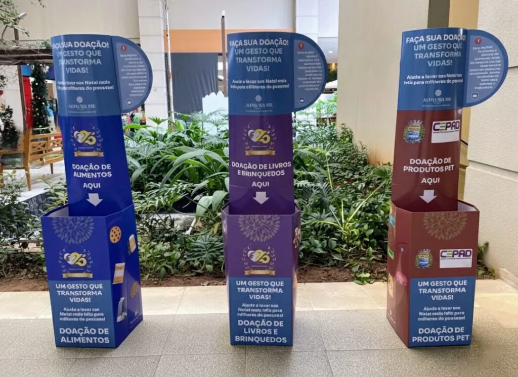 Para envolver a comunidade de Alphaville e região, o shopping instalou totens de coleta em seu espaço, convidando o público a doar brinquedos, livros, roupas, acessórios e alimentos não perecíveis. Cada item arrecadado será destinado às famílias atendidas pela Rainha da Paz, levando mais carinho e esperança para o Natal de quem mais precisa.